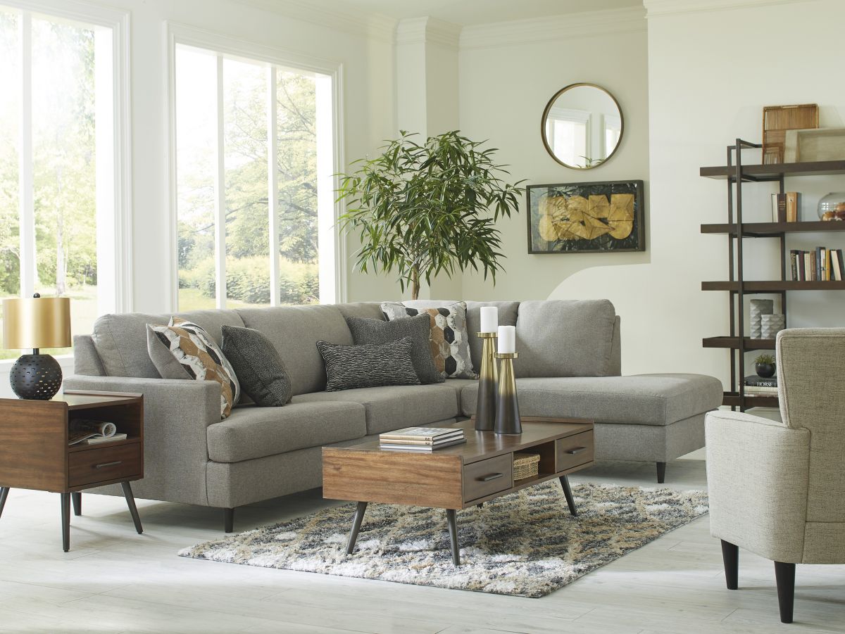 You could spend a small fortune. But why would you when the Santasia 2-piece sectional in granite gray lends that high-end furniture gallery look you long for—at an incomparably affordable price? Reserved for those with an appreciation for classic mid-century furnishings, this ultra-chic sectional with open-ended chaise, handsome menswear fabric, slim track arms and tapered splayed legs invites you to raise your standard of living while staying well within budget.