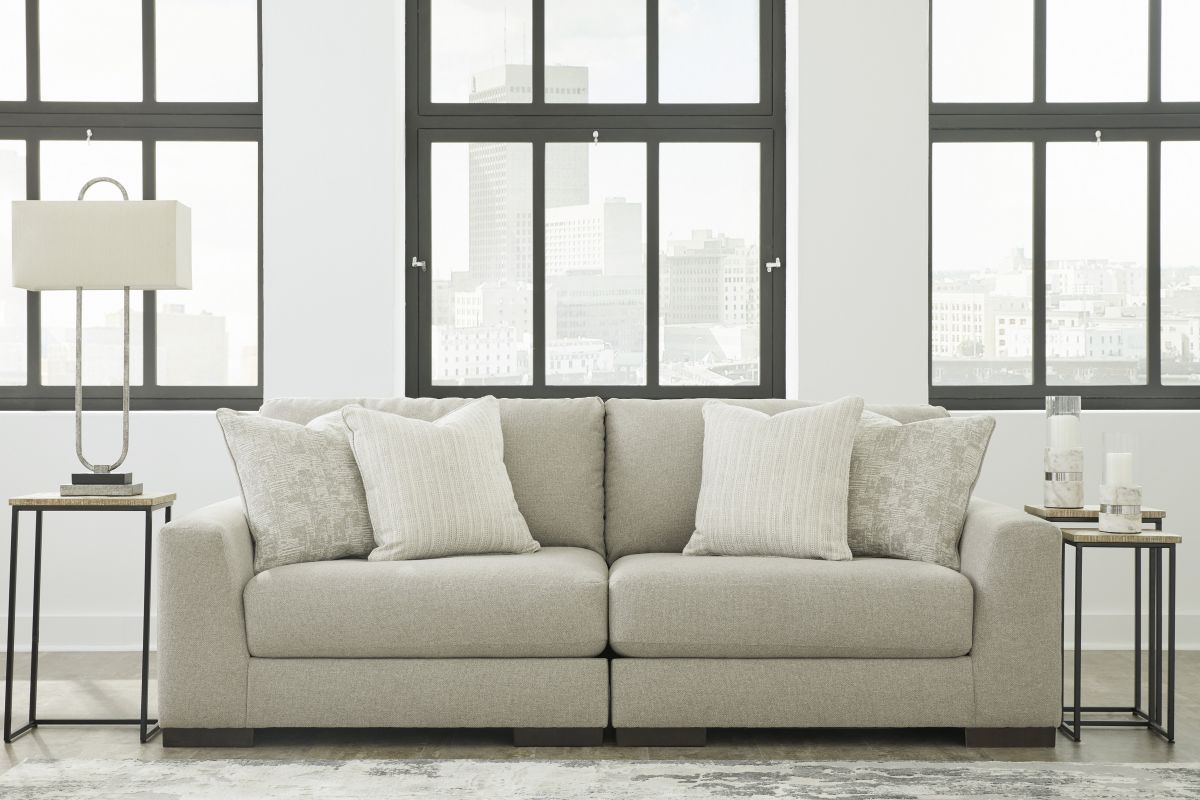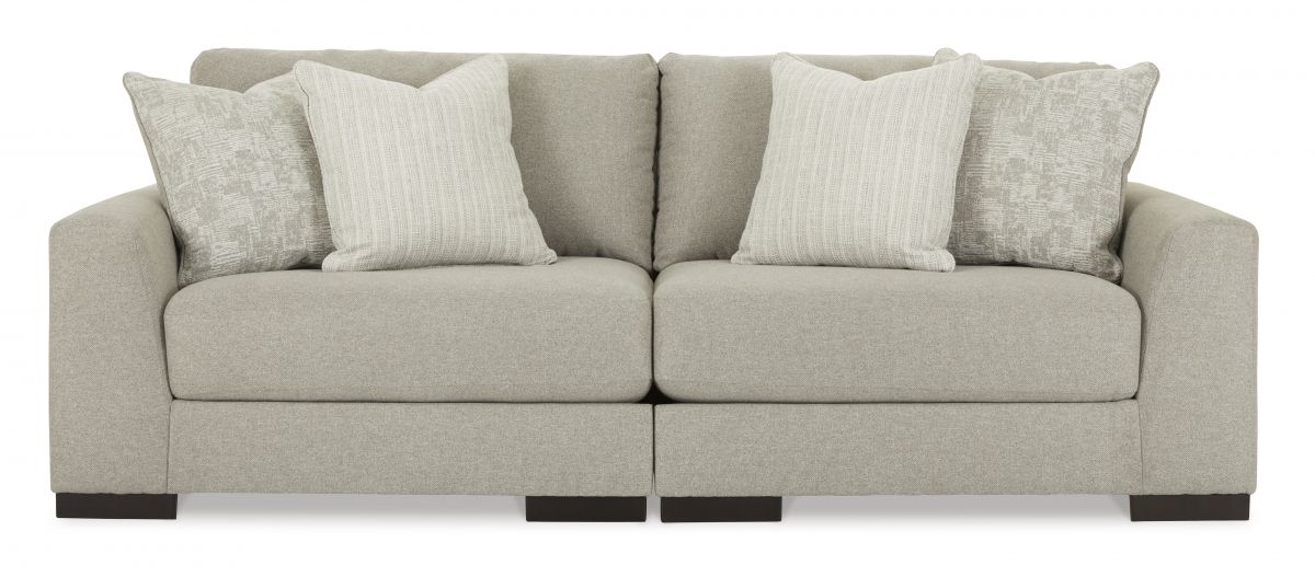 Distinguished yet unassuming, the versatile and visually appealing Lyndeboro loveseat adds a refined touch to any space. Inspired by the dapper look of fine tailored menswear, its rich texture turns heads, while a soft, light gray hue blends effortlessly with other colors in the room. Clean lines and wide track arms embrace a minimalist contemporary style. The loveseat's modular design offers a variety of configurations for flexibility. Plush, reversible deep cushions provide extraordinary comfort and can be rotated for longer life. Accent pillows in soft shades of complementary colors add subtle contrast. This handsome piece will make a memorable impression again and again.