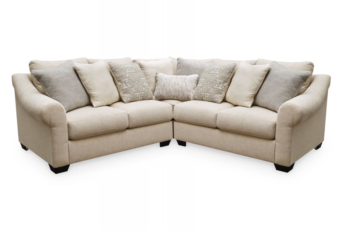 Whether your personal style is urban glam or cozy modern farmhouse, rest assured the Carnaby sectional is an inspired choice. Irresistible elements include sloped and sculptural roll arms and a light and lovely upholstery with linen weave texture that’s beautifully on trend. A plethora of decorative designer pillows add a sense of luxury.