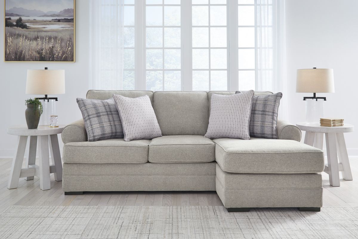 The Arbhor Knoll sofa chaise is perfect for movie nights, games or cozy naps. Its soft herringbone weave upholstery offers unmatched comfort. Accent pillows add a casual contemporary touch with their delightful blend of colors. Elevating your relaxation game has never been easier.
