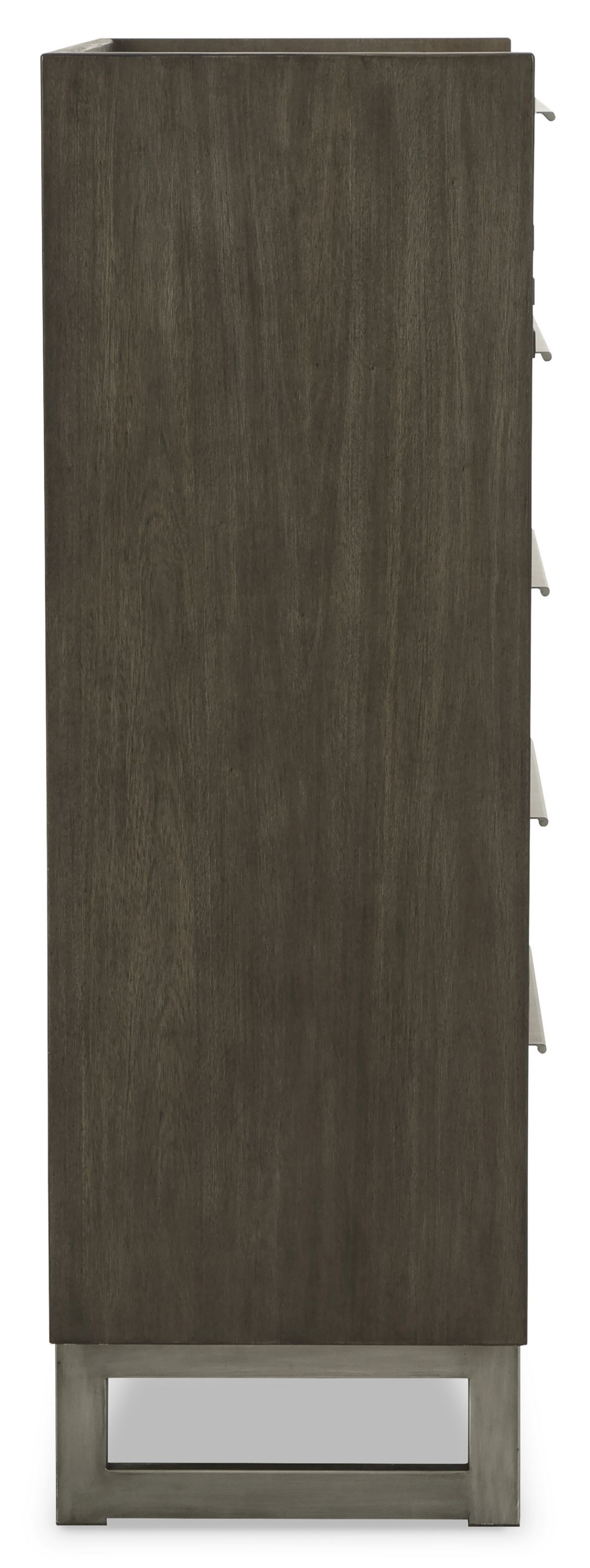 A sophisticated design with clean lines, the Arkenton chest has a rich gray finish.