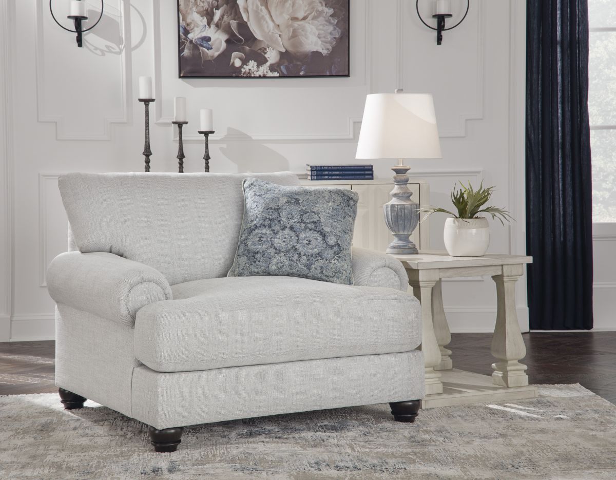 If you like the idea of a richly versatile “transitional” look that feels fresh and contemporary—with a timeless classic sensibility—feast your eyes on this oversized chair. Its soothing neutral upholstery with ribbed texture, a delightful change from the ordinary, is sure to feel right at home now and in the future.