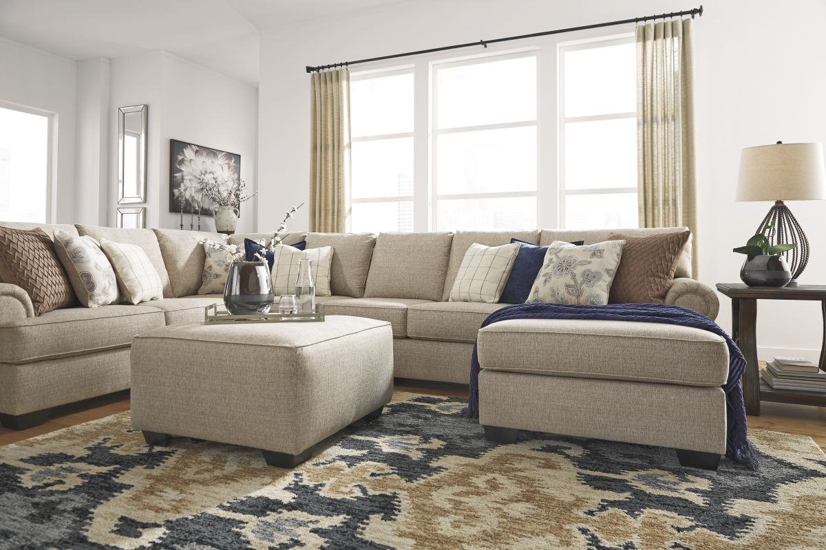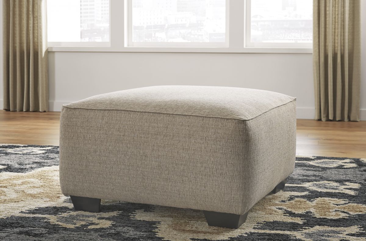 The generously scaled Baceno ottoman makes high style look effortlessly elegant. Textured linen-weave upholstery is warm, neutral and a natural complement for any space. Tri-block feet in a dark finish add a nice contrast and tailored touch.