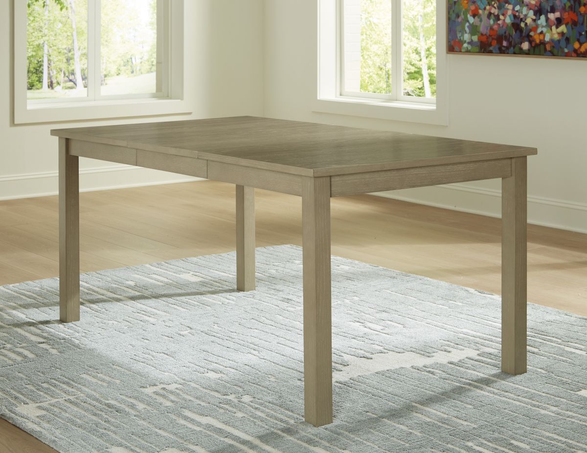Satisfy your taste for casually cool simplicity with this dining extension table. More than easy on the eyes, its gray wash finish with warm undertones is highlighted with a white glaze to enhance the wood grain texture. The timeless Parsons leg design exudes a relaxed aesthetic as you gather around the table. A removable leaf makes room for one and all.