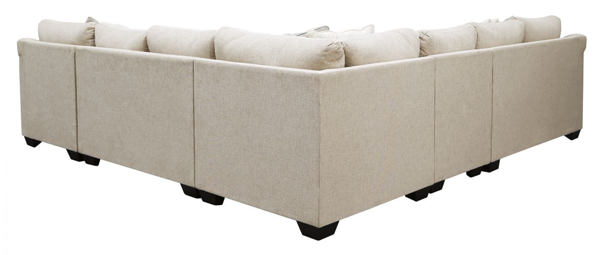 Whether your personal style is urban glam or cozy modern farmhouse, rest assured the Carnaby 5-piece sectional is an inspired choice. Irresistible elements include sloped and sculptural roll arms and a light and lovely upholstery with linen weave texture that’s beautifully on trend. A plethora of decorative designer pillows add a sense of luxury.