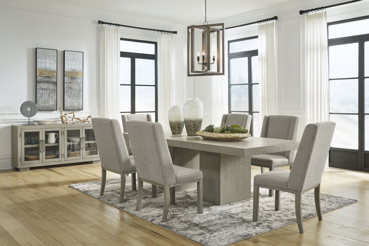 The Fawnburg dining package has a clean, contemporary design with a relaxed sensibility. Its sturdy silhouettes sport a trend-right gray taupe finish. For those inclined toward modern stylings, this set is sure to please.