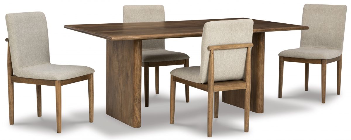 With its back-to-nature sensibility, the Isanti dining package is a natural fit for your well-edited space. A clean-lined design lets the beautifully organic quality and inherent luster of the wood shine through. From the table's smooth, sculptural profile and the side chair's textural upholstery to the refreshing light finish, this set makes a statement by being remarkably understated.