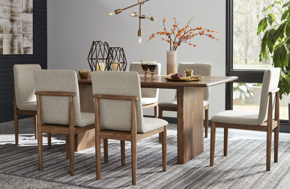 With its back-to-nature sensibility, the Isanti dining package is a natural fit for your well-edited space. A clean-lined design lets the beautifully organic quality and inherent luster of the wood shine through. From the table's smooth, sculptural profile and the side chair's textural upholstery to the refreshing light finish, this set makes a statement by being remarkably understated.