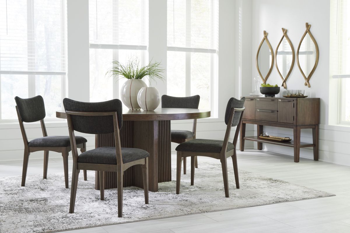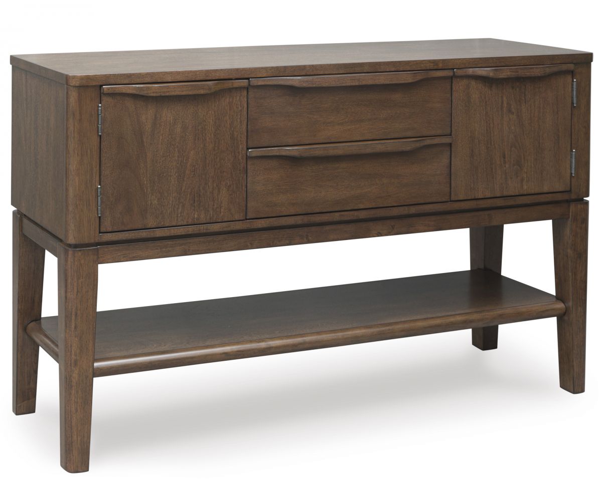 The Korestone dining sever exemplifies casual contemporary design with an urban vibe. Warm and inviting with a rich brown finish, it makes storing dining essentials that much sleeker thanks to its two smooth-gliding drawers and spacious cabinets. Seamlessly incorporated wood handles subtly nod to mid-century modern design. What a stunning reflection of your simple-meets-elegant sensibility.