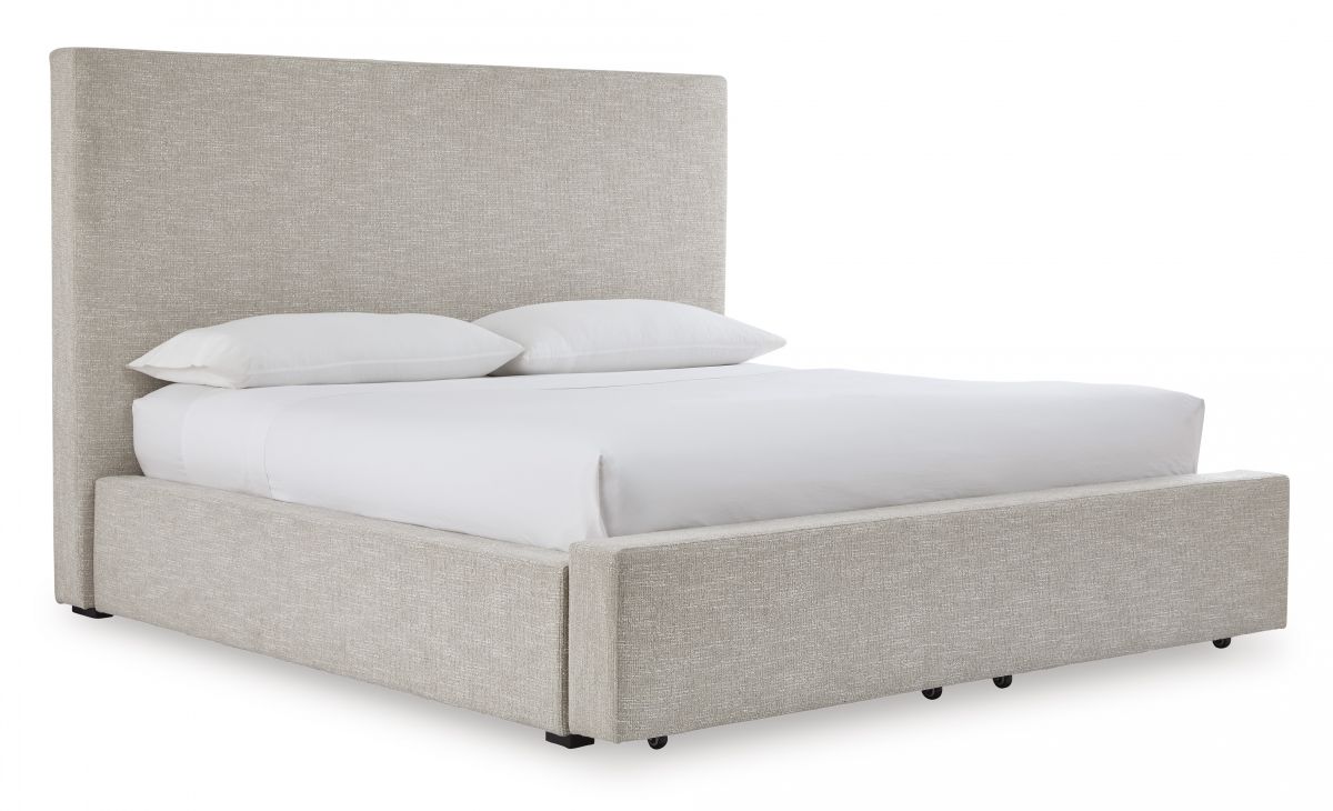 Add exceptional modern farmhouse appeal to your inner sanctum with this queen storage bed. Its straightforward silhouette is fully upholstered in an inviting neutral fabric that blends with everything. Charmingly simple with a discreetly placed storage drawer, the bed offers a casually comfortable look that’s right at home.