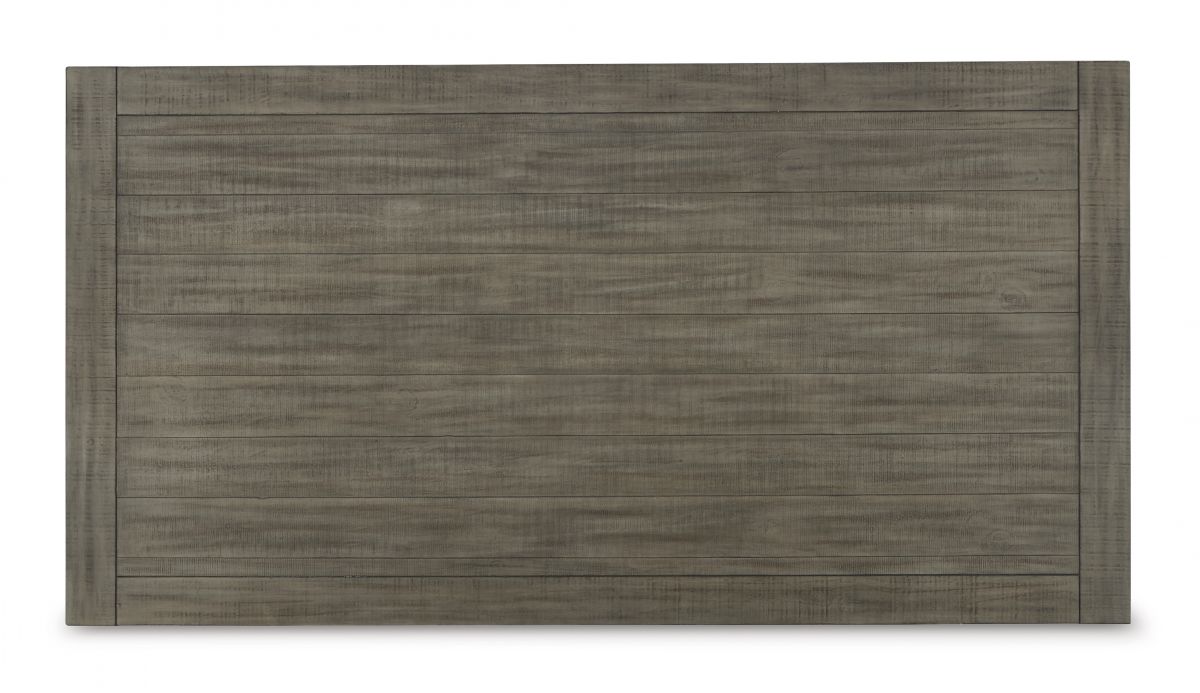 The use of mixed materials on the urban-inspired Krystanza dining table makes it a true statement piece. Featuring a wood tabletop combined with a sturdy wood and metal base, this rectangular table combines a complex blend of stains and glaze—creating a weathered gray finish for a relaxed and harmonious update to your home.