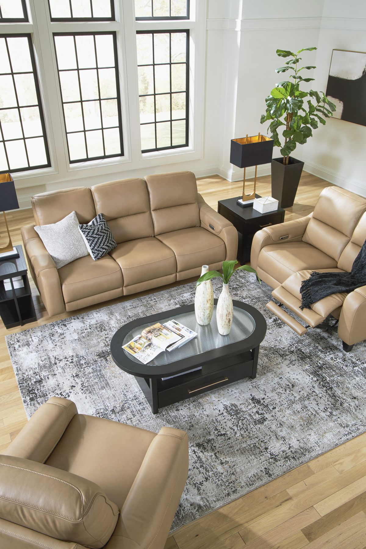 Embrace the sleek and high-design of the Mosswell power recliner, made with adjustable headrests and USB charging.
