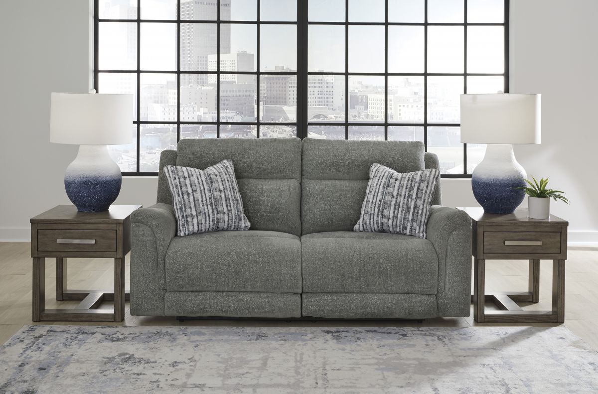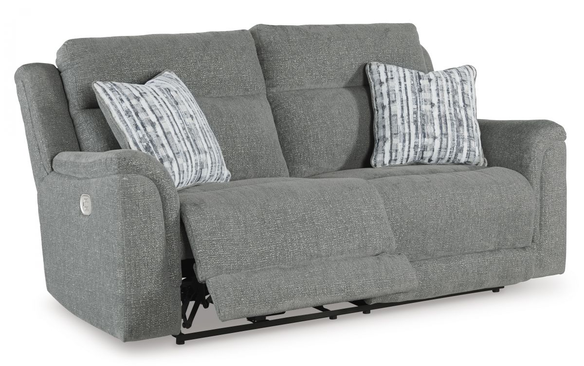 Recline, relax and revel in functionality. This power reclining sofa is designed for comfort and durability—and did we mention its can’t-miss contemporary style? One-touch controls and adjustable headrests effortlessly bring you to your ideal reclined position. Plus the easy-to-clean Next-Gen Nuvella™ performance fabric makes maintenance simple. Chic abstract accent pillows, complete with machine-washable covers, polish off the look.