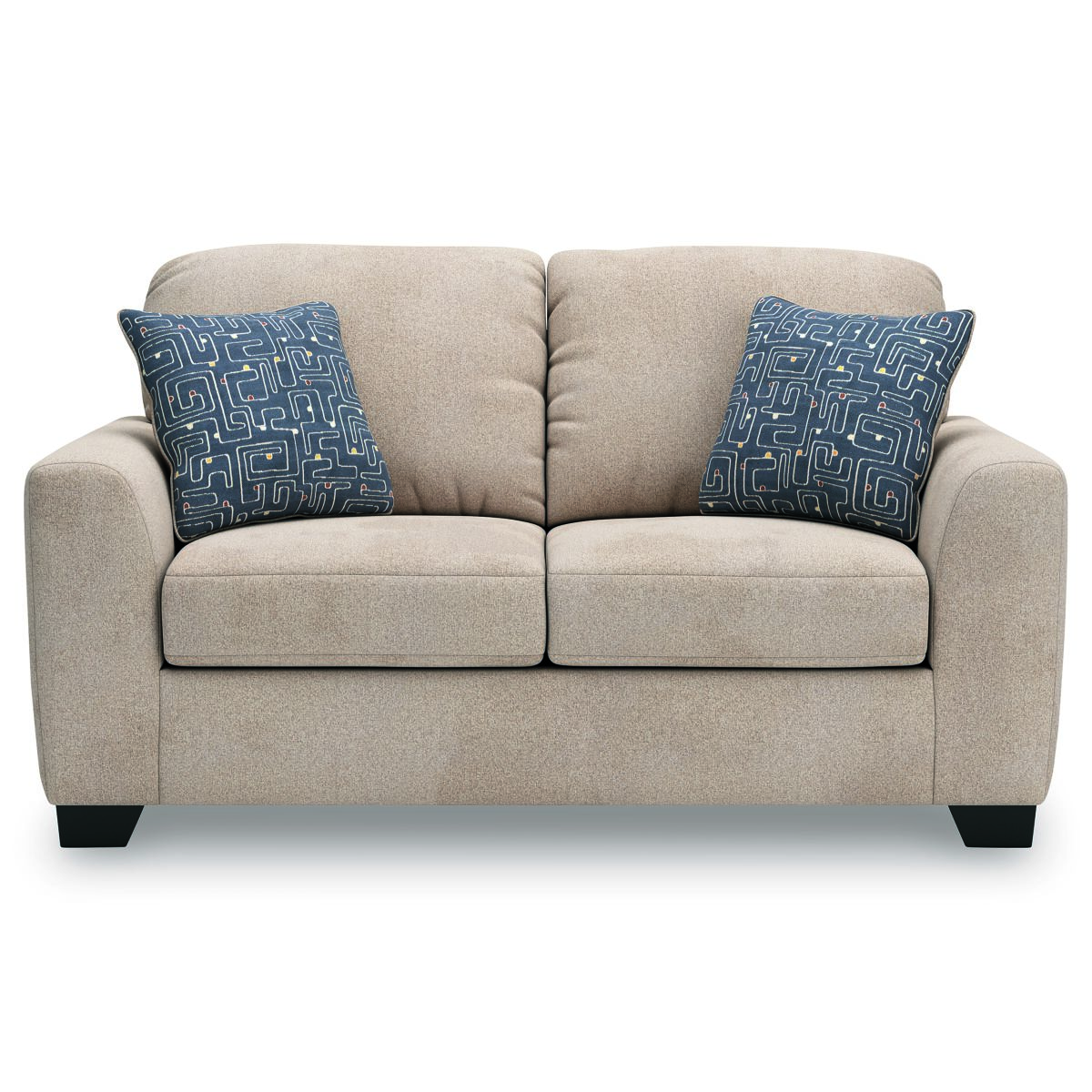 Enhance the casual look of your living room with the Panola loveseat in a neutral color palette.