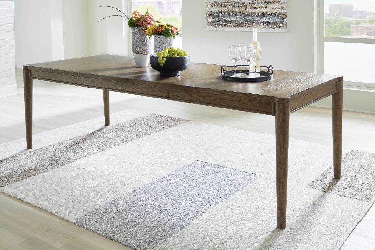 Give your mid-century modern dining room that finishing touch. The Roanhowe dining table serves up simple sophistication with a modern silhouette. Its eye-catching top extends to comfortably accommodate up to 10 people. Picture yourself hosting guests at this gorgeous table—and bringing a little minimalism with big character to your home.