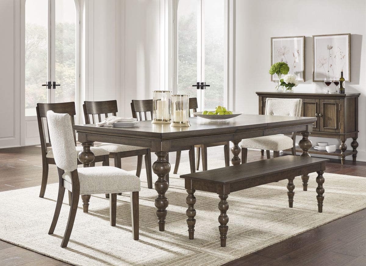 For those who appreciate a traditional aesthetic with understated elegance, the Veramond dining server brings home a feast for the senses. Its rich brown walnut finish merges seamlessly with a profiled top and baluster turned legs for a richly classic appeal. Thanks to its versatile functionality, this piece effortlessly works as a sideboard, TV stand or entryway table. What a deliciously timeless choice.