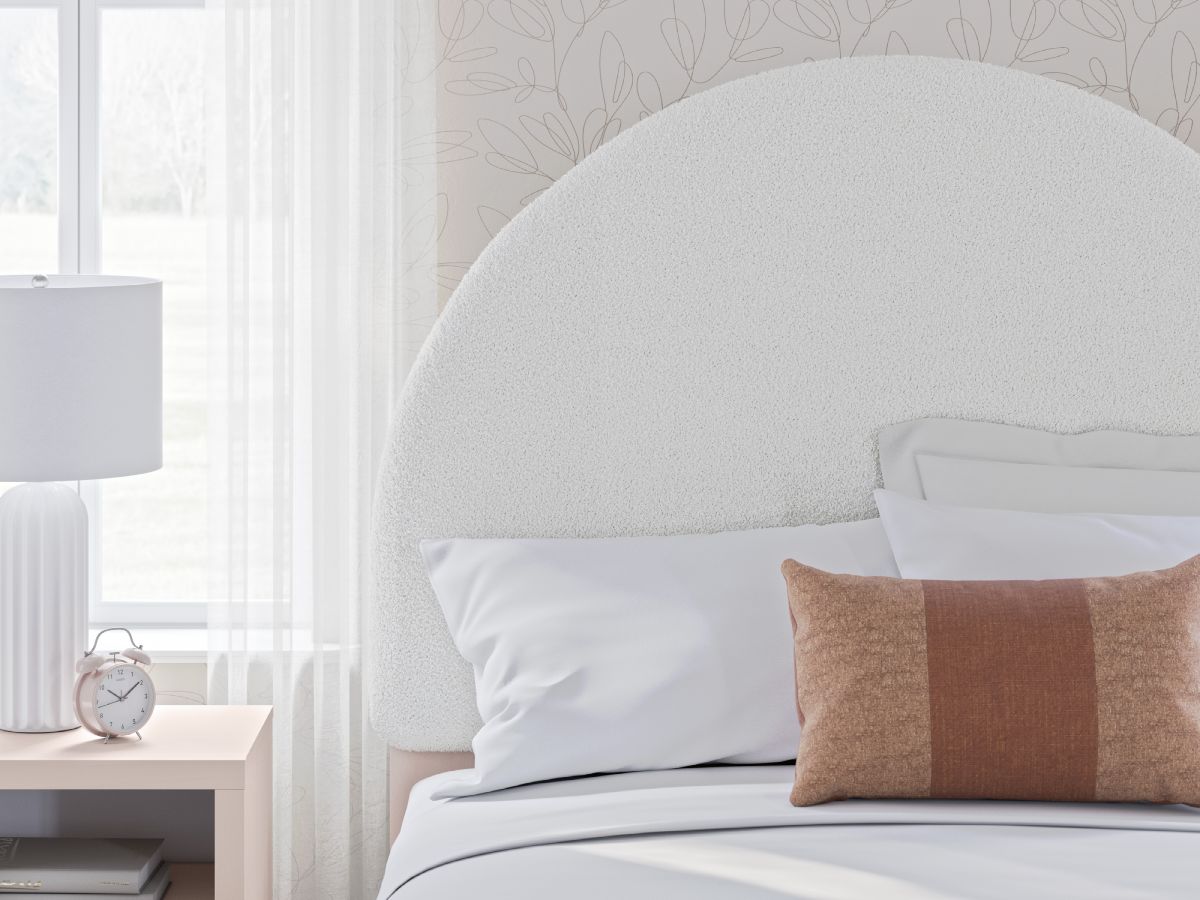 Pretty in pink. The Wistenpine full upholstered panel bed keeps the spirit of your home’s modern aesthetic while suiting all your young one’s needs. Its cozy-cute upholstery and subtle blush finish bring a playful, charming vibe to bedtime. Made for her and styled for you, it’s a lovely addition to a beautifully chic child’s bedroom.